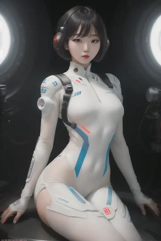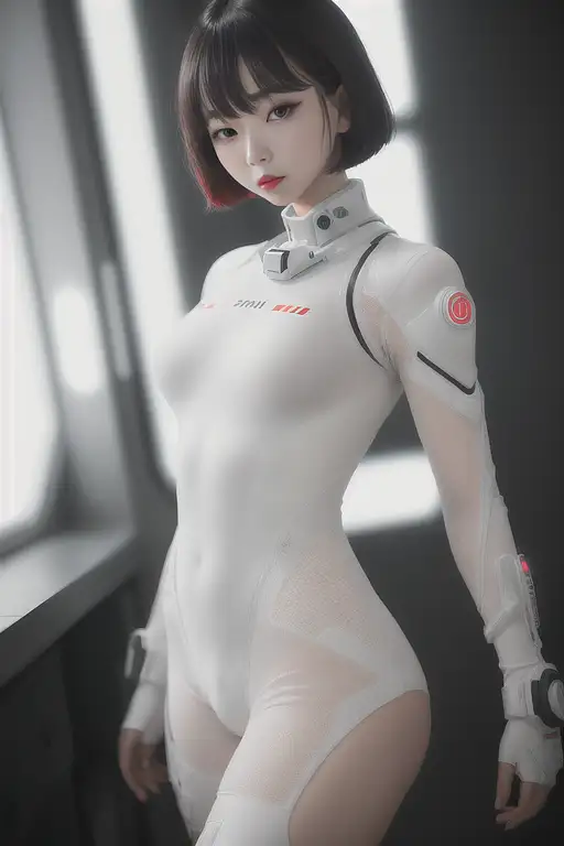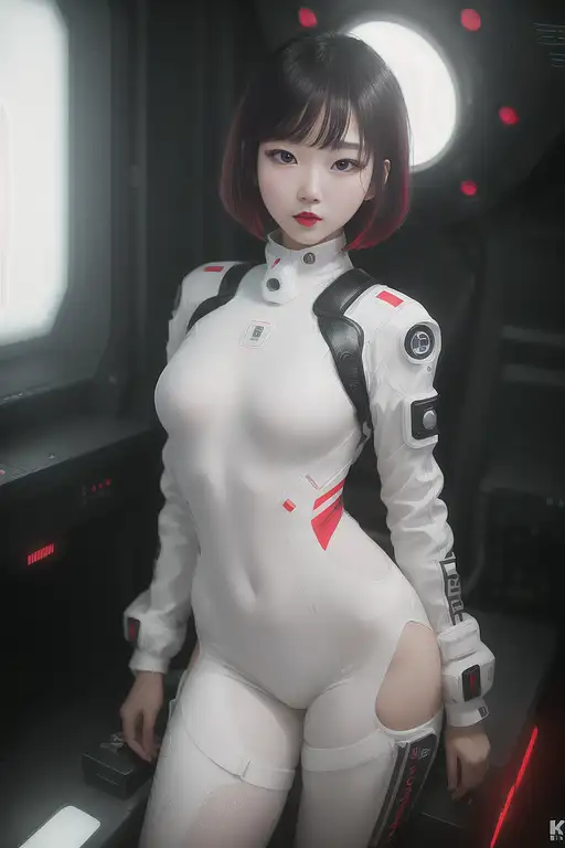 over 2 years ago (1girl), (full body), (white futuristic sci-fi bodysuit), Beautiful Korean woman, kpop idol, (Cute Loose Bob hairstyle), symmetrical eyes, realistic, sharp focus, HD, highly detailed, intricate, photography, hyperrealism, hyperrealistic, film, studio portrait, detail, dramatic lighting, (red lips), (small breasts) Rachey13x 3 180