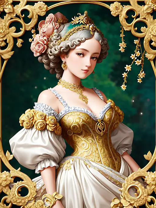 over 2 years ago The artwork is also infused with elements of various art movements, such as Rococo, Baroque, and Art Nouveau. The girl's gown features intricate patterns and ornate embellishments that are reminiscent of Rococo and Baroque styles, while the flowers and garden elements incorporate the flowing lines and organic shapes of Art Nouveau. Rachey13x 1 480