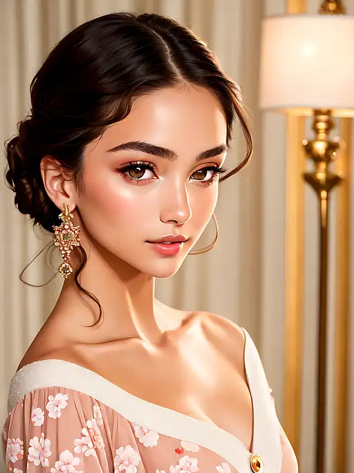 over 2 years ago The girl's features are exquisitely detailed, with a perfect button nose, full lips painted in a rosy hue, and high cheekbones that give her a look of timeless elegance. Her skin is flawless, with a soft, dewy glow that suggests she is bathed in the warm glow of love. Rachey13x 26 1.4k