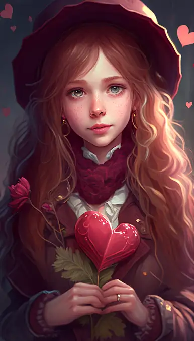over 2 years ago In one hand, the girl holds a bouquet of fragrant roses, their petals velvety soft and their colors ranging from a pale blush to a deep crimson. In the other hand, she holds a heart-shaped box of chocolates, each one intricately designed with a unique pattern and filled with decadent flavors that melt in your mouth. Rachey13x 10 680