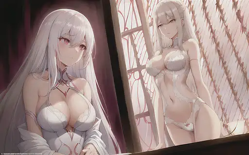over 2 years ago medium length white hair, a young South Korean girl wearing pink lingerie, proportional body, a highly detailed face by Greg Rutkowski and Magali Villeneuve, beautiful eyes, toned body, cinematic lighting, depth of field, photography Rachey13x 1 110