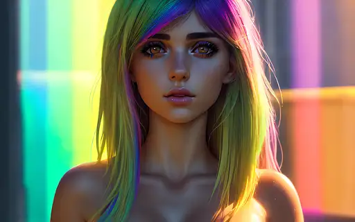 over 2 years ago ultra realistic, ultra detailed, beautiful young girl, olive skin, detailed gorgeous face, medium length rainbow hair, cinematic lighting, lumen reflections, photography, stunning environment, Hyperrealism Rachey13x 2 160