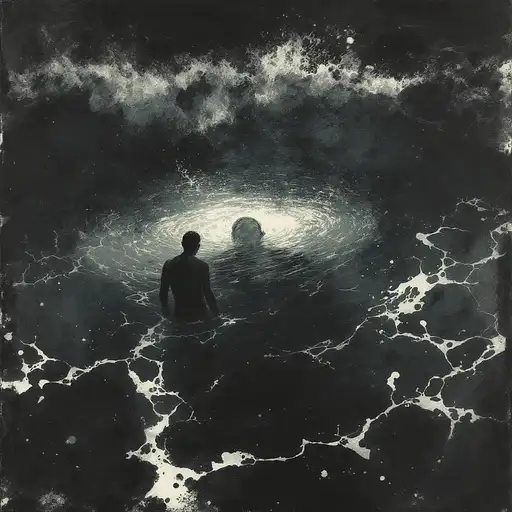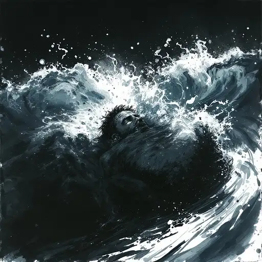 10 months ago illustration of a submerged man, sea, waves, dark, alone, scary by Jeremy Mann, Hugo Pratt, Milo Manara, Enki Bilal, Jean Baptiste Monge, wet ink, charcoal sketch RandomBro420 0 18