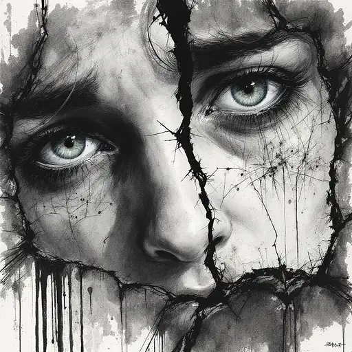 10 months ago illustration of sad and detailed depressing eyes, hollow, shadowed issues, unspoken burdens, silent battle, fractured mirror by Jeremy Mann, Hugo Pratt, Milo Manara, Enki Bilal, Jean Baptiste Monge, wet ink, charcoal sketch RandomBro420 0 9
