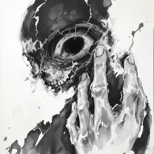 10 months ago illustration of detailed hollow eyes, depression, no face, shadowed, unspoken burdens, silent battle, fractured mirror by Jeremy Mann, Hugo Pratt, Milo Manara, Enki Bilal, Jean Baptiste Monge, wet ink, charcoal sketch RandomBro420 0 16