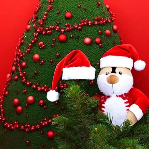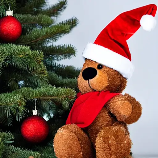 christmas tree with teddy bear with santa hat