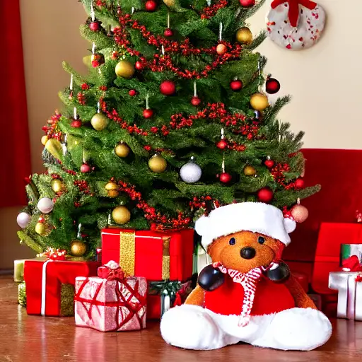 christmas tree with santa teddy bear