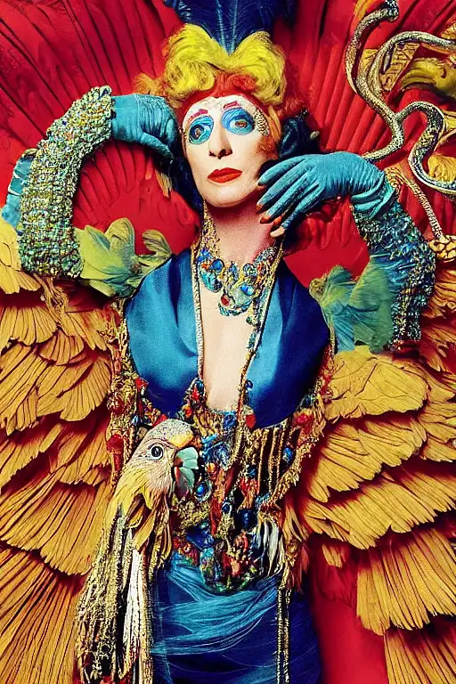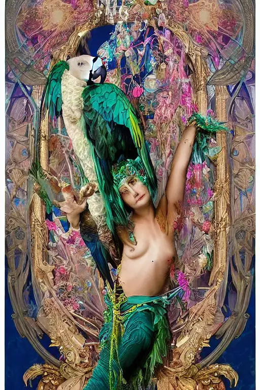 almost 3 years ago glamour portrait of a parrot goddess, Cindy Sherman, art nouveau rococo architecture, ornate, Intricately detailed, vibrant colors, magical ethereal, Helmut newton ReachingMyDream 0 400