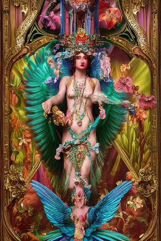 almost 3 years ago Photograph of a beautiful parrot goddess by David LaChapelle, art nouveau rococo architecture, intricately detailed, fantasy, ethereal ReachingMyDream 0 440