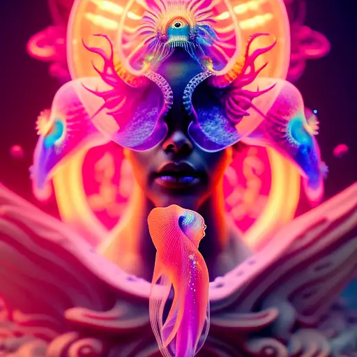 almost 2 years ago Goddess close-up portrait ribcagel. jellyfish phoenix head, nautilus, orchid, skull, betta fish, bioluminiscent creatures, intricate artwork . octane render, trending on artstation,t cinematic, hyper realism, high detail, octane render, 8k Reckoningartq 0 41