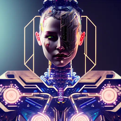 almost 2 years ago humanoid artificial intelligence girl with metallic muscle structure wearing bandana, with anodized cyberpunk markings and tattoos m metal arms legs chest and face, 'salon d'artificiel written on robot chest, intense futuristic, cyberpunk lettering and design, dramatic, cinematic, raw photo, color corrected Reckoningartq 0 100