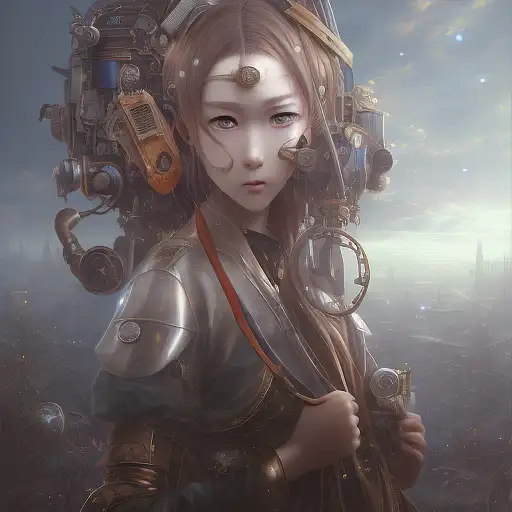 almost 2 years ago an anime girl wearing steampunk vest Surviving a confide in World War 1.in the style of raphael lacoste, zhang jingna, serene faces, the stars art group (xing xing), peter lely, light orange and dark blue --ar 69:128 --s 750 --niji 5 Reckoningartq 0 36