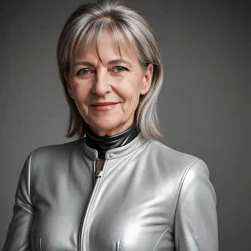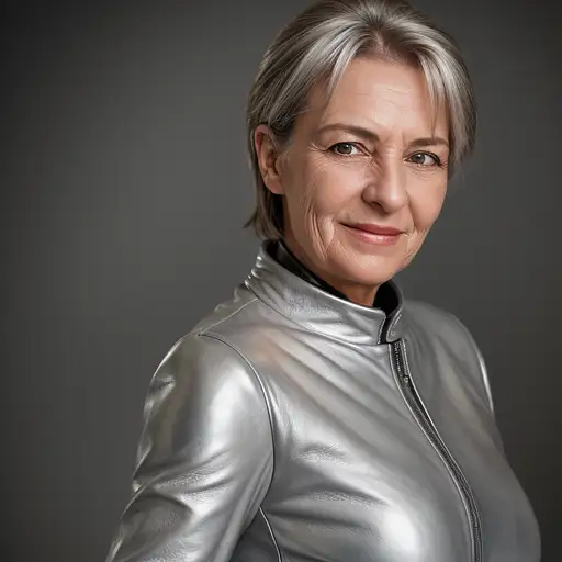 almost 2 years ago hyper realistic headshot photo of a 55 year old german woman, wearing a silver leather suit, looking into the camera smiling slightly Reeph 0 21
