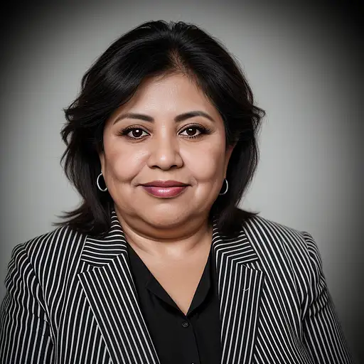 almost 2 years ago hyper realistic headshot photo of a 55 year old mexican woman, overweight, wearing a black white striped suit, looking into the camera smiling slightly Reeph 0 27