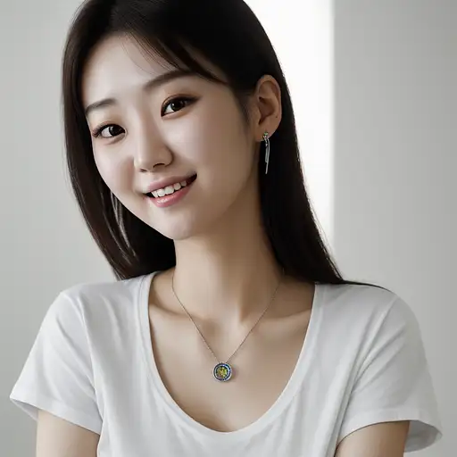 almost 2 years ago hyper realistic headshot photo of a 25 year old corean woman, white t-shirt, extreme slim, extreme skinny, expensive jewelry, looking into the camera, smiling slightly, ultrarealistic, soft lighting, 8k Reeph 0 27