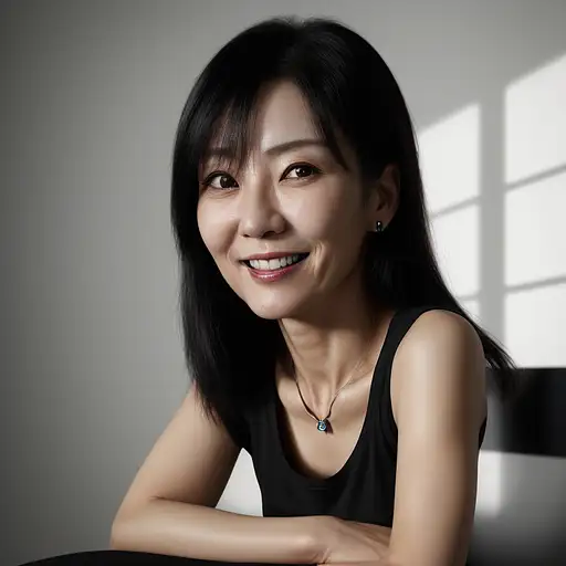 almost 2 years ago hyper realistic headshot photo of a 45 year old corean woman, black t-shirt, extreme slim, extreme skinny, expensive jewelry, looking into the camera, smiling slightly, ultrarealistic, soft lighting, 8k Reeph 0 19