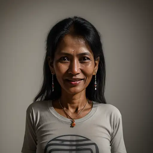 almost 2 years ago hyper realistic headshot photo of a 45 year old nepal woman, t-shirt, extreme slim, extreme skinny, expensive jewelry, looking into the camera, smiling slightly, ultrarealistic, soft lighting, 8k Reeph 0 31