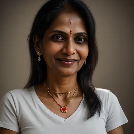 almost 2 years ago hyper realistic headshot photo of a 45 year old indian woman, t-shirt, extreme slim, extreme skinny, expensive jewelry, looking into the camera, smiling slightly, ultrarealistic, soft lighting, 8k Reeph 0 29