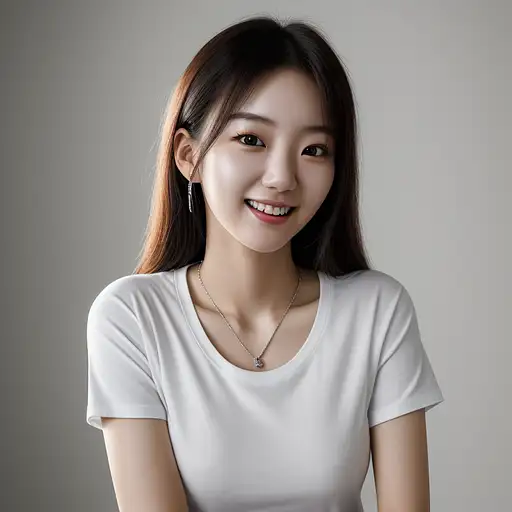 almost 2 years ago hyper realistic headshot photo of a 25 year old corean woman, white t-shirt, extreme slim, extreme skinny, expensive jewelry, looking into the camera, smiling slightly, ultrarealistic, soft lighting, 8k Reeph 0 29