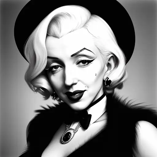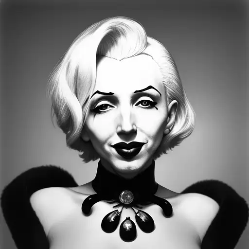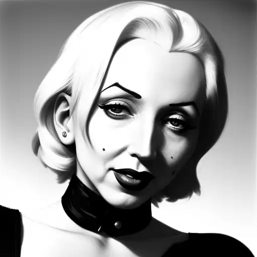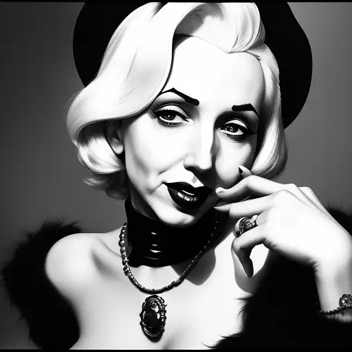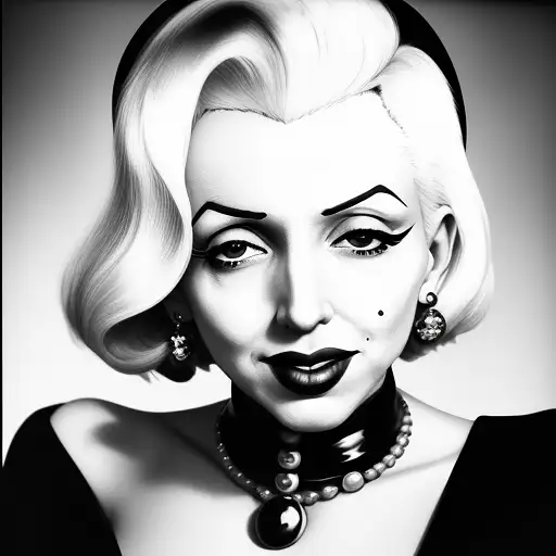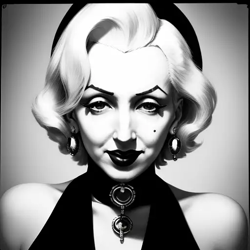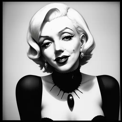 almost 2 years ago Old black and white photography of (Marilyn Monroe: Marilyn Manson: 0.5), expensive jewelry, looking into the camera, smiling slightly, 35mm black and white film, Leika R3 camera Reeph 0 32
