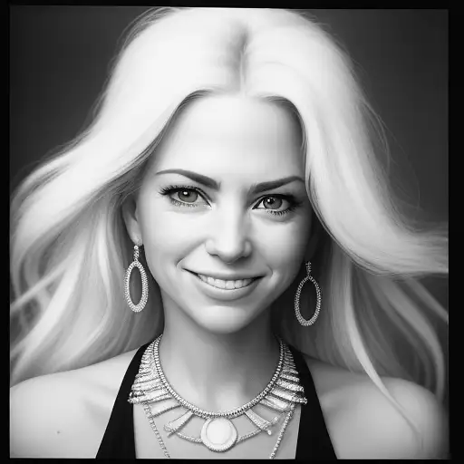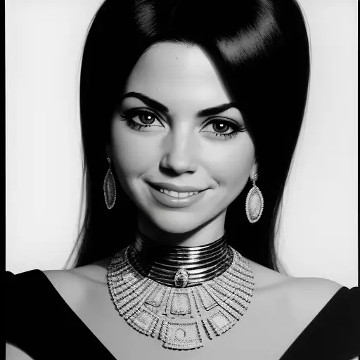 almost 2 years ago 60 year old black and white photography of an elegant woman, short grey hair, slim, skinny, expensive jewelry, looking into the camera, smiling slightly, 35mm black and white film, Reeph 0 31