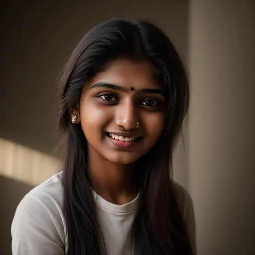 almost 2 years ago hyper realistic headshot photo of a 20 year old, indian, girl, looking into the camera, smiling slightly, ultrarealistic, soft lighting, 8k Reeph 0 24