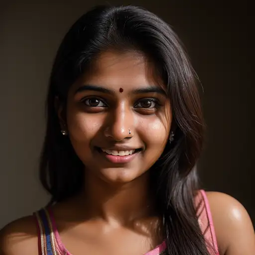 almost 2 years ago hyper realistic headshot photo of a 20 year old, indian, girl, looking into the camera, smiling slightly, ultrarealistic, soft lighting, 8k Reeph 0 17