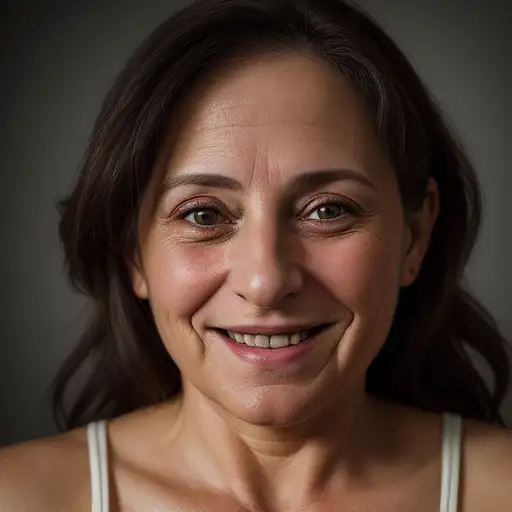 almost 2 years ago hyper realistic headshot photo of a 40 year old, jewish woman, looking into the camera, smiling slightly, ultrarealistic, soft lighting, 8k Reeph 0 17