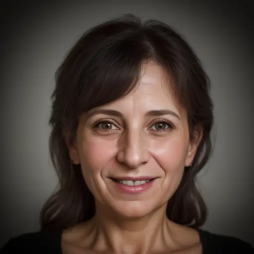 almost 2 years ago hyper realistic headshot photo of a 40 year old, jewish woman, looking into the camera, smiling slightly, ultrarealistic, soft lighting, 8k Reeph 0 18