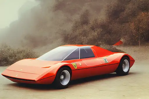 3 years ago a vintage photo of the 1970 Ferrari Modulo 512 Concept Model, light foggy atmosphere, realistic photograph, 8k, very detailed, Rez777 0 750