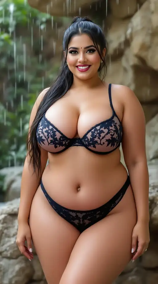 front view huge curvy body naked exposed to slim see through bra and panty looking at viewers smiling on her beautiful face sexy teeth, hugging her sexy boss at office, full body huge curved shape hip butt ass cleavage thick creamy skin detail of a 25 year old plus size sexy hourglass figured Telegu Indian anchor Shriya Ghoshal boobs standing on a large rock spreading her soft legs getting shower her wet body with clothes getting shower by a garden and office room with her boss has rain sweats droplets on her body and face wet looking up with alluring sexy teeth laughing smile on her black big eyes with black mascara embroidered bright dark Royal BLACK color transparent chiffon body tight bikini bra and front view boobs strapless deep neck huge tits cleavage tiny bra exposed curve breasts, very big breasts boobs ponytail hair athletic woman, view from behind, full body photograph, looking at viewer, slight pout, she has black and brown-maroon mixed blonde hair,