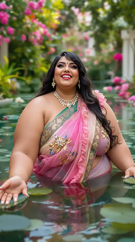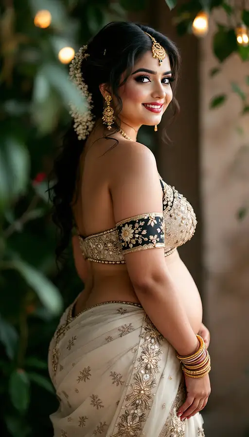 a full front view large big ass cleavage round heart shaped sexy butt ass Indian model front no bikini view with front view of large boobs cleavage, the woman is looking at her back to me with beautiful black eyes plus size legs with high heels matched color cleavage realistic looking Sexy Indian plus size sexy white Indian woman looking smiling at me with sexy eyes and beautiful skin color with smiley face a Indian hot and sexy boobs view girl looking at her back standing on her heart shaped ass without bikini butt boobs and legs transparent white magenta black polka dots red panty tiny slim bare and tiny transparent bare bra boobs and hip smiley sexy teeth and bridal hairstyle, capture the delicate contours of her face and the intricate details of her classic hair style black vibrant colors to capture the intensity of the garden her hairs styles Gorgeous Cupcake Hued