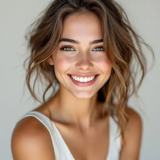 8 months ago photo of a beautiful young woman wearing a white tank top shirt, and smiling at the camera, photorealistic, hyper-detailed, shot on a Sony A7III, white background --ar 1:2 --stylize 750 ScrawnySmalls 0 35