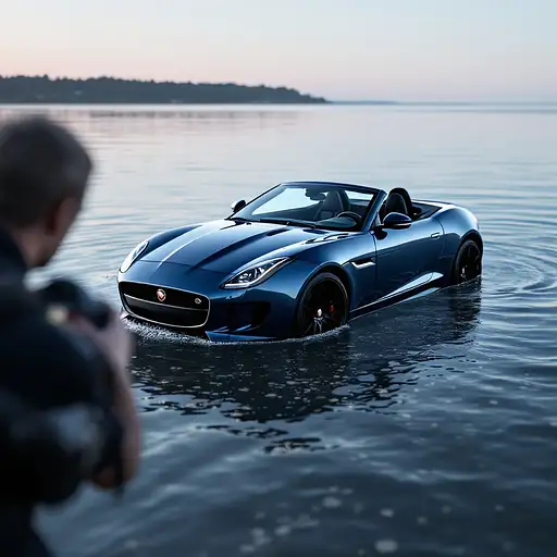10 months ago jaguar ftype convertible car whose reflex has fallen into the water and the camera has taken a picture of its reflex Seppi528 0 11