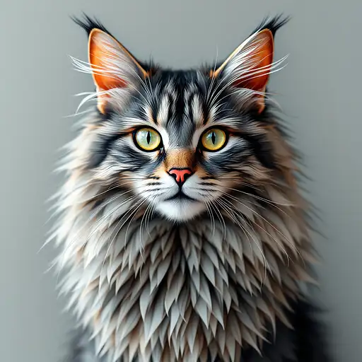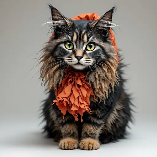 10 months ago 3d rendering, front view, beautiful female maine coon cat, paper work for a tactile style, select a color palette with vibrant colors, grey, and black , emphasize textures that rough-textured colored paper, masterpiece, handmade --ar 9:16 --style raw --stylize 500 Seppi528 0 11