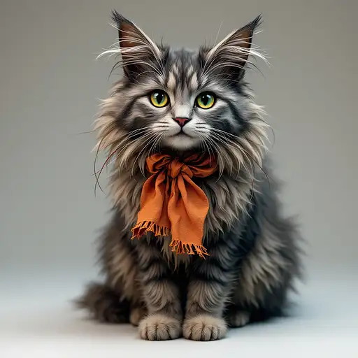 10 months ago 3d rendering, front view, beautiful female maine coon cat, paper work for a tactile style, select a color palette with vibrant colors, grey, and black with white, emphasize textures that rough-textured colored paper, masterpiece, handmade --ar 9:16 --style raw --stylize 500 Seppi528 0 6