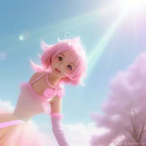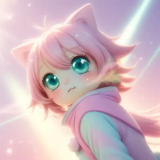 over 1 year ago Candid Shot, a cute anime mascot dissolving into adorable, pastel hues, blending into a soft, pastel palette, spreading joy and cheer, illuminated by soft, warm light, inspired by the Bryan Hitch, low angle, looking at the camera, lens flare, with a whimsical fairytale setting as the background --ar 2:3 --niji 5 ShiroNyanko 3 220