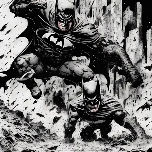 almost 2 years ago Style of Frank Miller pen and ink, Dark Knight Returns style, Batman rising and emerging from the mud and detritus, roaring in anger. Fighting the leader of the cyber punks. debris, action shot, extreme angle. --ar 2:3 --stylize 500 Sinarezaei 0 110