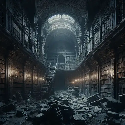 almost 2 years ago an abandoned creepy dark library, extremely photorealistic, intricate, cinematic, hyperdetailed --q 2 Sinarezaei 4 240
