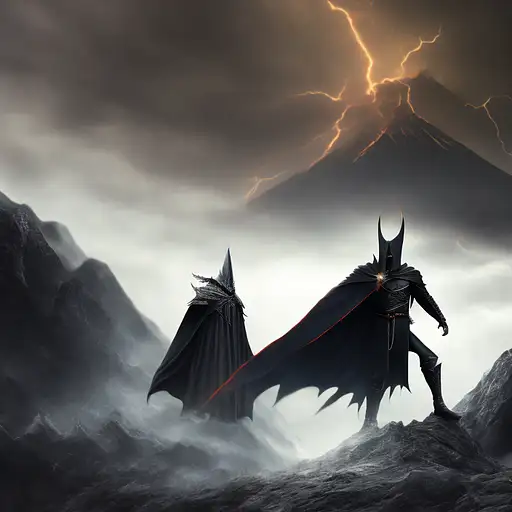 almost 2 years ago full body, Lord of the ring Sauron, cape in the wind of a storm, dark, night, volcano, mountain, epic, dramatic, hyper - realistic 3d game character, action intensity pose --ar 16:9 --style raw Sinarezaei 0 89