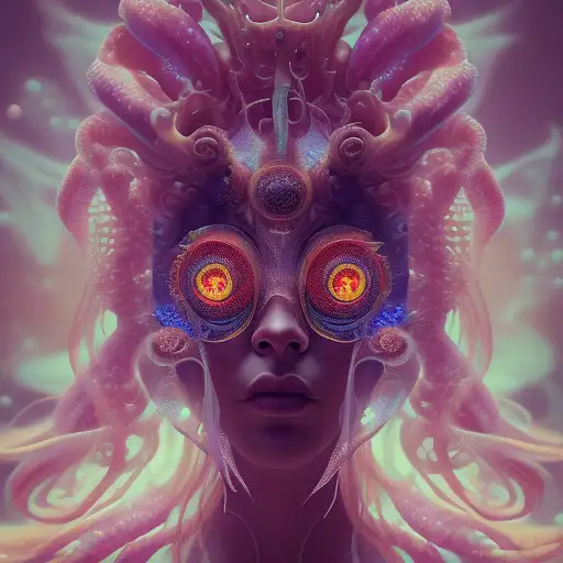1 year ago Goddess close-up portrait ribcagel. jellyfish phoenix head, nautilus, orchid, skull, betta fish, bioluminiscent creatures, intricate artwork . octane render, trending on artstation,t symmetrical artwork. cinematic, hyper realism, high detail, octane render, 8k soheil 0 43