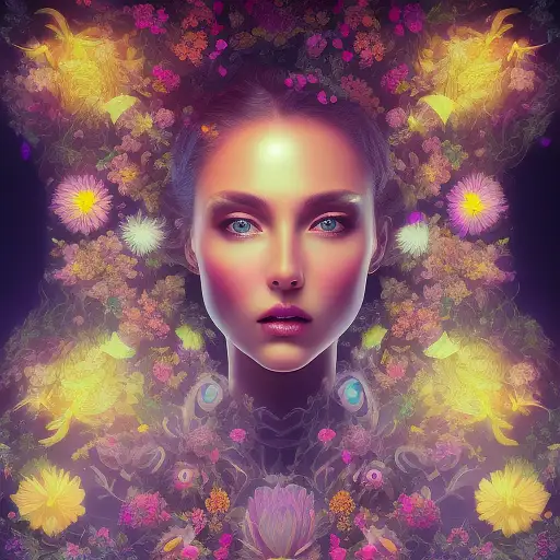 2 years ago Fluorescent flowers and a golden iridescent glow on the face on black background Sweetyroo11 0 63