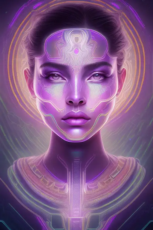 over 2 years ago Halo neon iridescent purple light sign in the design of face | of gorgeous mosaic goddess | detailed gorgeous face | precise lineart | intricate | realistic | studio quality | cinematic | iridescent astral glow bio luminescence | character design | concept art | highly detailed | illustration | digital art | digital painting Sweetyroo11 0 38