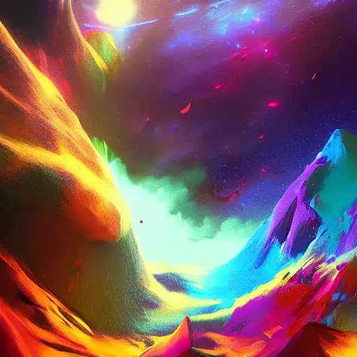 2 years ago vivid, bold, and often unnatural colors, as well as simplified forms and expressive brushwork worlds of galaxies, fantasy portal to far universe, dramatic light, faded sunrise, cinematic lighting, shattered, angle-forward, Artstation, 4k, hyper-realistic, pixelated, Unreal Engine 5, cinematic, masterpiece, Sweetyroo11 1 180