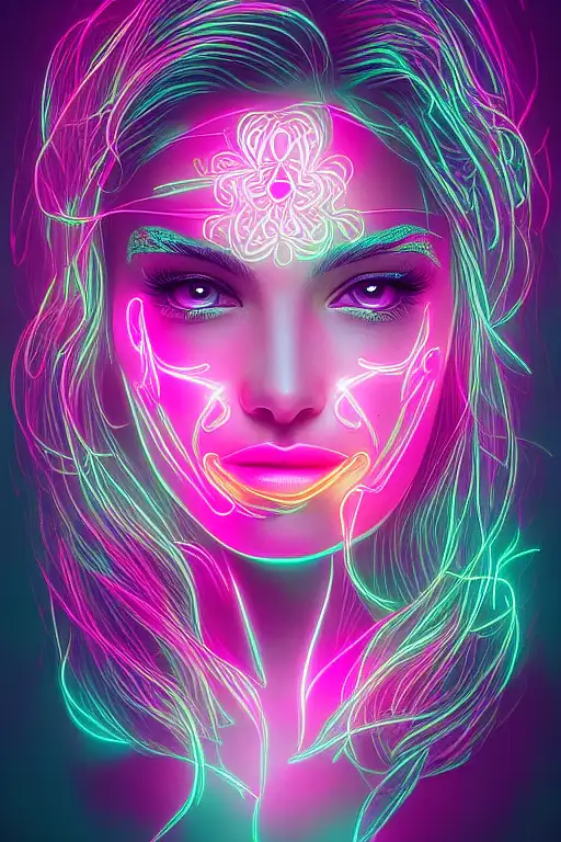 over 2 years ago neon light sign in design of face | of gorgeous goddess | detailed gorgeous face | precise lineart | intricate | realistic | studio quality | cinematic | iridescent glow luminescence | character design | concept art | highly detailed | illustration | digital art | digital painting Sweetyroo11 0 44