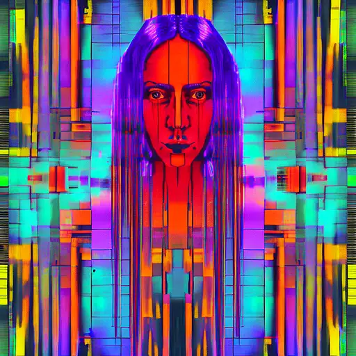 over 2 years ago Abstract bioluminescent portrait of a determined beautiful woman with long iridescent hair, gritty swirling purple vibrant cybernetics, digital UI, abstract blocks, glitch art, hacking effects, glitch effects, digital tech effects, chromatic, color blocking!, octane, object-centered, oil on canvas, cyberpunk, symmetrical, Red, concept art, abstract, trending on art station Sweetyroo11 0 26