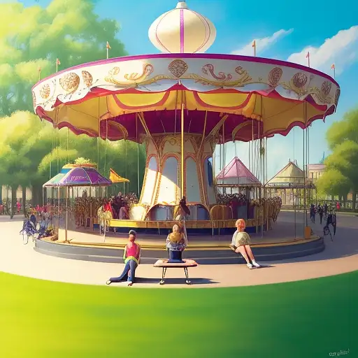 almost 2 years ago The place is a park, a group of people exercising on the grass, a sunny day, a couple of people sitting on a bench and reading a book. A carousel in the background. The colors of this painting are vivid, strong colors. Sylwiakolo 0 42