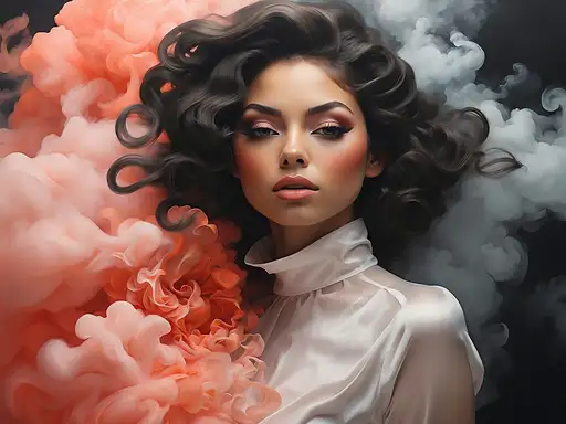 2 years ago portrait of a woman covered in cloud of smoke, whirlwind, coral highlight colors, coral make-up, hints of pastel, misty, seductive, sultry, breathtaking, oil painting style, artistic, aesthetic modern art, hyper-realism Taeyu 0 82