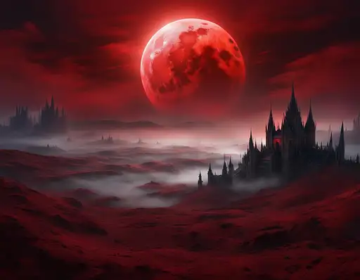 2 years ago A mysterious, fog-shrouded landscape illuminated by a deep red blood moon. Epic cinematic brilliant stunning intricate meticulously detailed dramatic atmospheric maximalist digital matte painting Taeyu 4 160