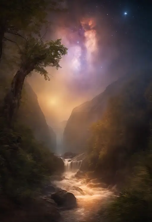 2 years ago beautiful landscape with river and mountains ,star nebula,very bright colors,light particles,with bright light,mshiff,wallpaper art,UHD background image Duffman 6 260